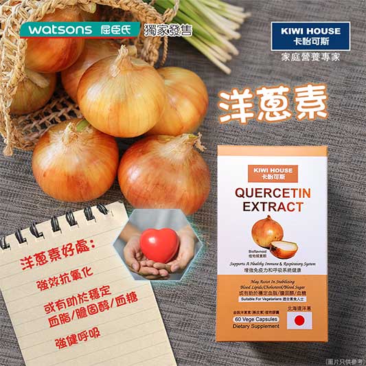 經 卡怡可斯20 3 月, 2021分類:Uncategorized 洋蔥好處多,當中蘊含嘅洋蔥素,正正就係洋蔥嘅重點健康成份。 洋蔥素多種功效: .有助調節血脂血糖,有益心血管健康 .減輕過敏不適 .增強呼吸系統健康 .強效抗氧化 .植物類黃酮,有助增強免疫力 洋蔥健康有益,但烹煮過後往往流失大量營養成份,點算好? 卡怡可斯金裝洋蔥素,專利濃縮萃取日本北海道洋蔥有效成份,每日2粒,輕鬆攝取洋蔥精華,健康達標! 詳細資訊: https://kiwihousehk.com/product/quercetinextract/