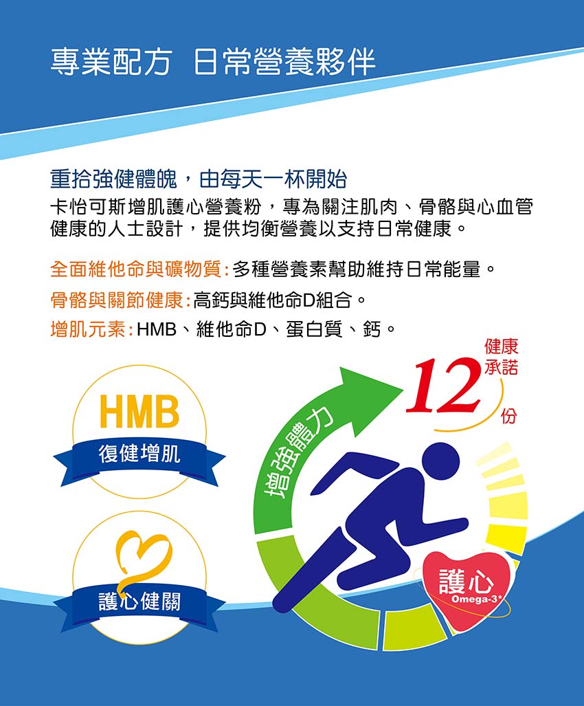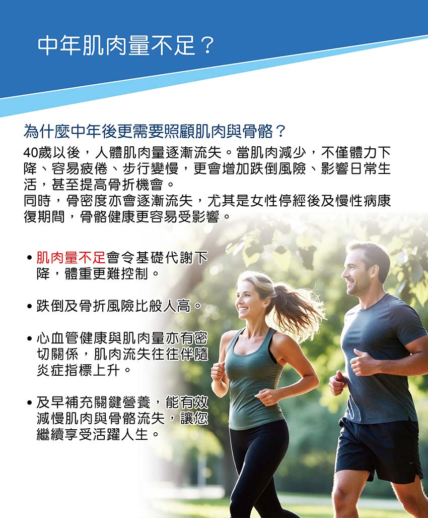 - HMB補充因年齡或疾病而流失的肌肉養份