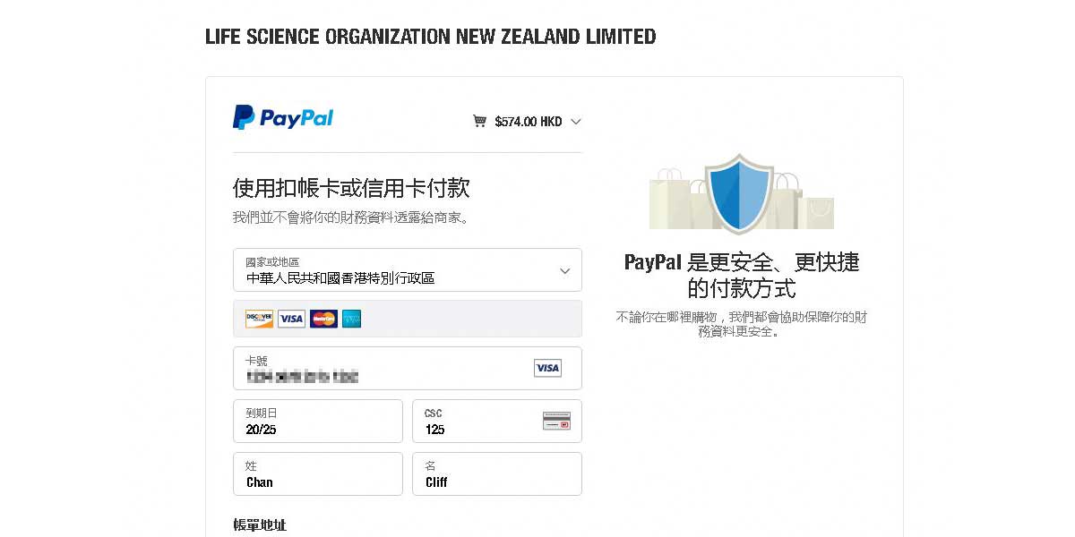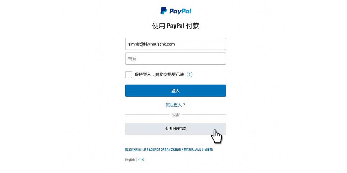 登入PayPal付款,或點擊「使用卡付款」按鈕以使用信用卡/扣帳卡付款。